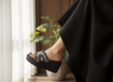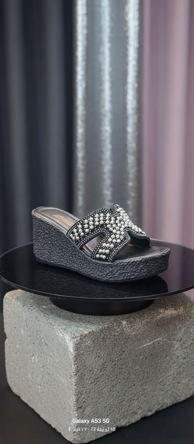 دمپایی مجلسی کار جدیدی از برند بهنام تبریز با پاخور عالی رویه پرنگین شیک و زیبا با پاشنه 10سانت و لژ بلند