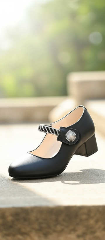 پاشنه دار با پاشنه پهن که راحتی تو حرکت رو برای خانم کوچولوهای شما به همراه داره