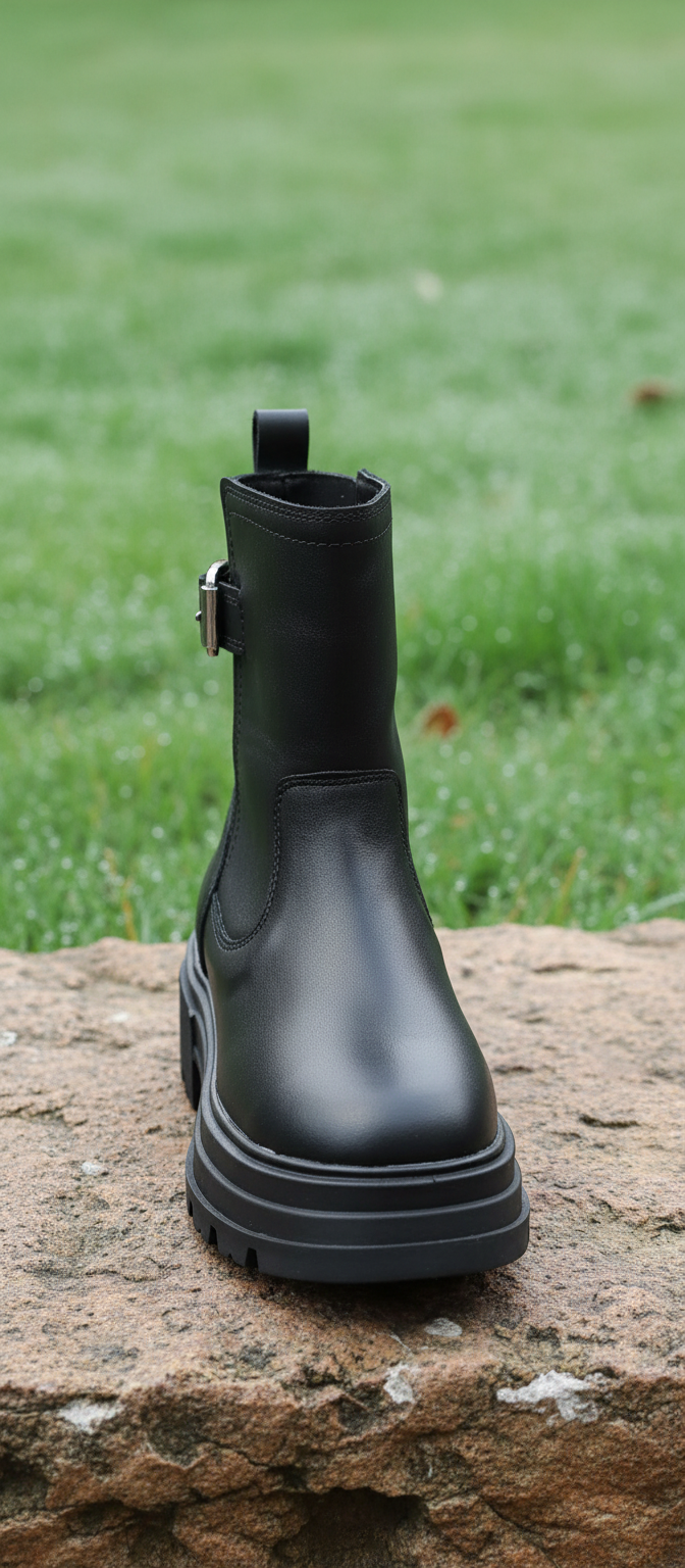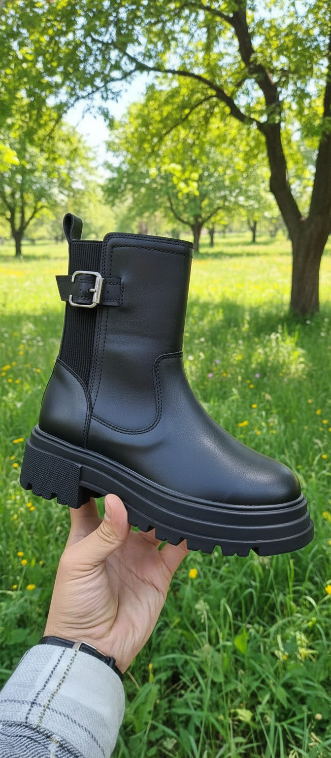 بوتی مدرن و ترند که ترکیبی از زیبایی و راحتی را ارائه میدهد. طراحی منحصربهفرد با رویه چرم مصنوعی و زیره پیو لژبلند برای ظاهری شیک و استایل امروزی.