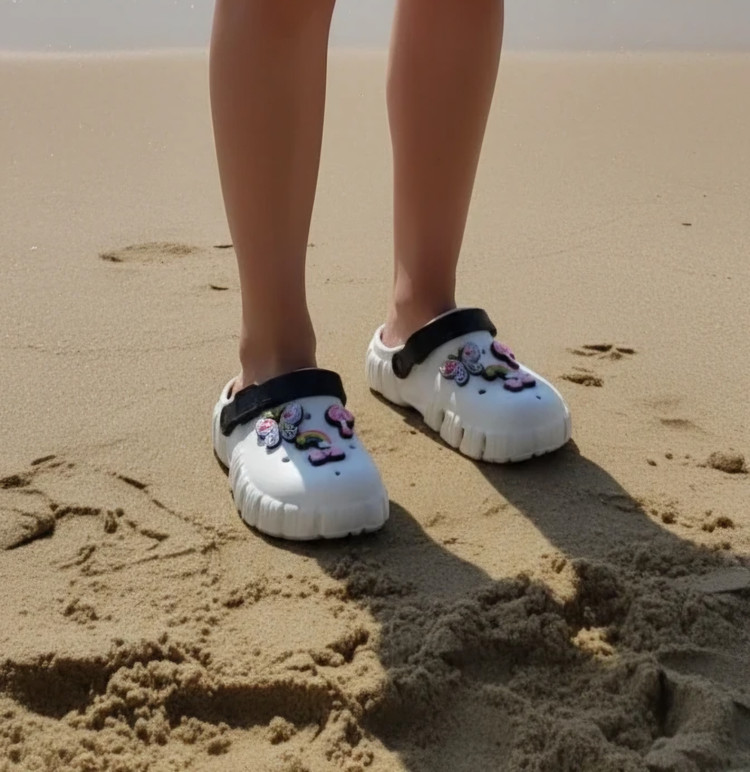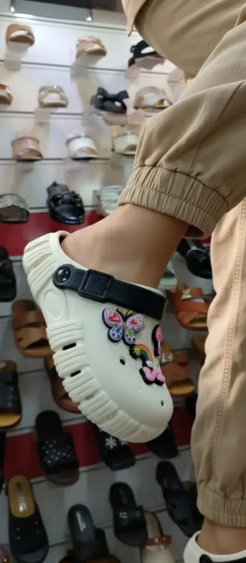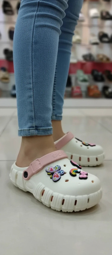 یه دمپایی کراکس با طراحی جدید و استیکر های زیبا .لژ بلند و کفه دوم کفش که راحتی بی اندازه ای رو براتون هدیه میاره